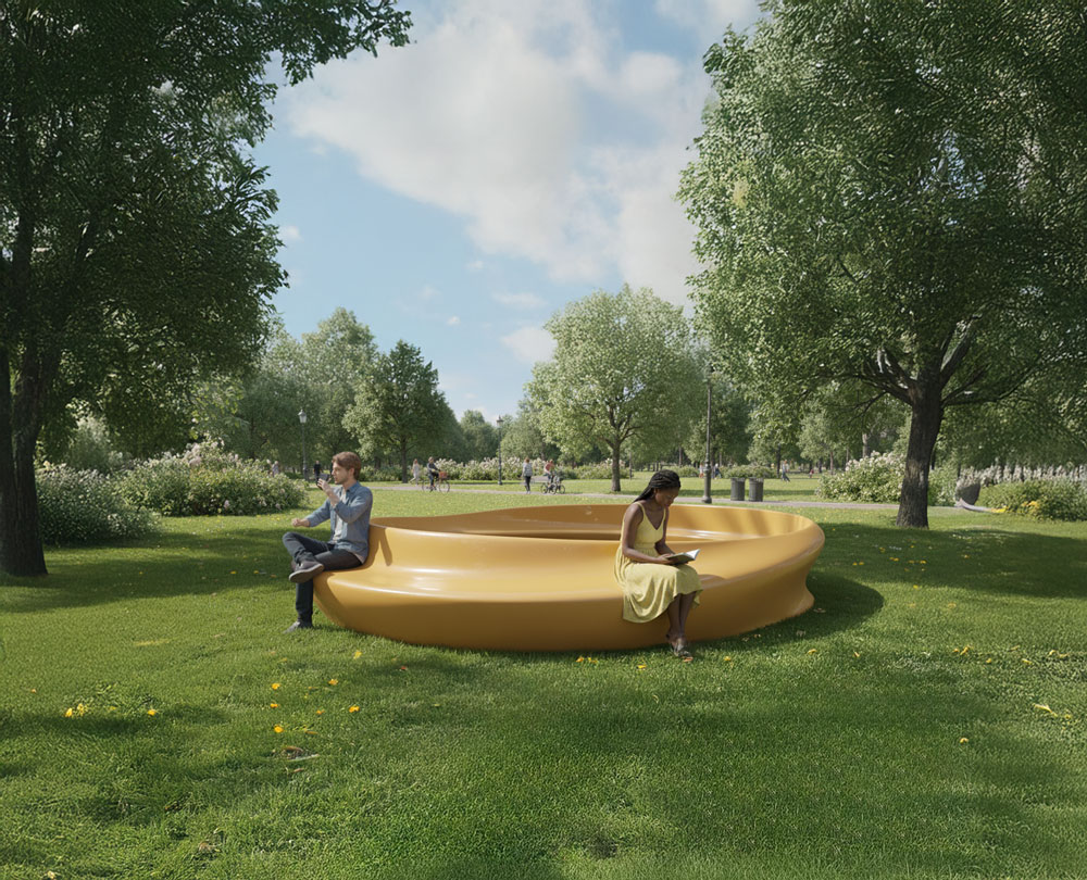 A continuous gesture in motion, Serica Ronda encircles space with fluid precision. Its seamless shape creates a gathering point - part bench, part sculpture, part installation. Crafted by robotics with a silk-like surface and sculptural calm, this framework transforms material into motion, a living contour for collective experience.