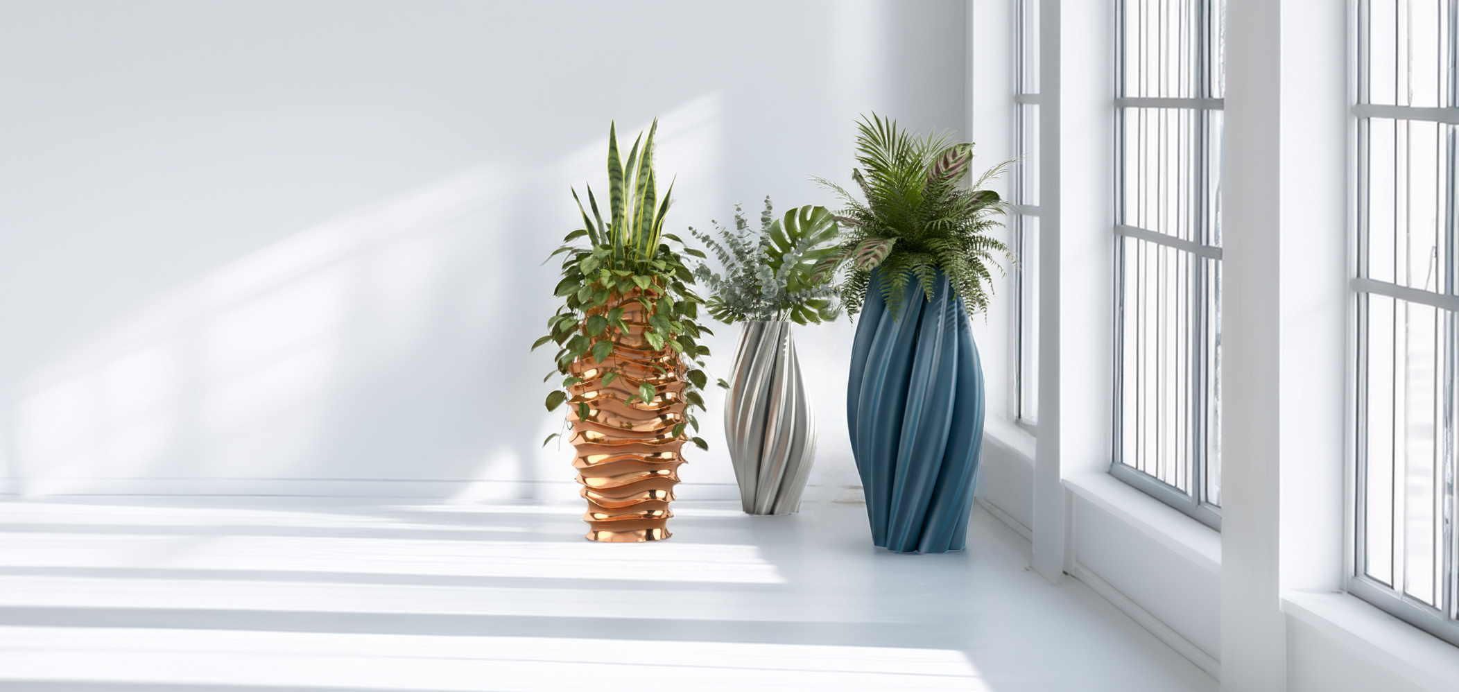 Unda Grand takes its name from the Latin word for “large wave,” echoing its flowing shape that capture light and shadow in constant motion. Designed as a parametric large vase for sculptural pieces it adapts in scale and proportion to your intent, from bold centerpiece to quiet accent. Unda Grand embodies Molldi’s ethos: sustainable, sculptural, and authored by space itself.