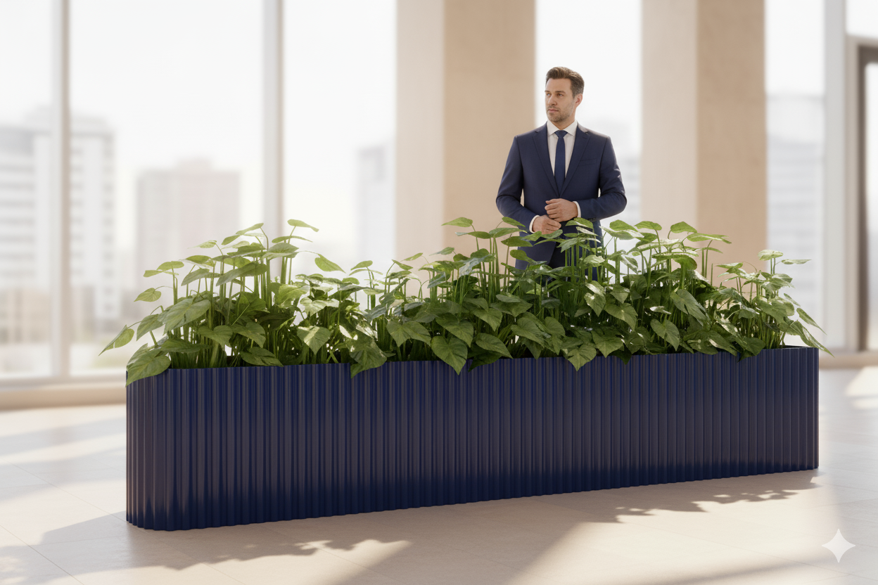 Where nature meets design, the Vista Planter transforms greenery into part of the built environment. Its elongated, sculptural body is composed with precision, yet alive with organic growth. Crafted by robotics and refined by human intent, Vista becomes more than a planter; it’s a living contour that softens structure, defines space, and brings quiet vitality to every setting.